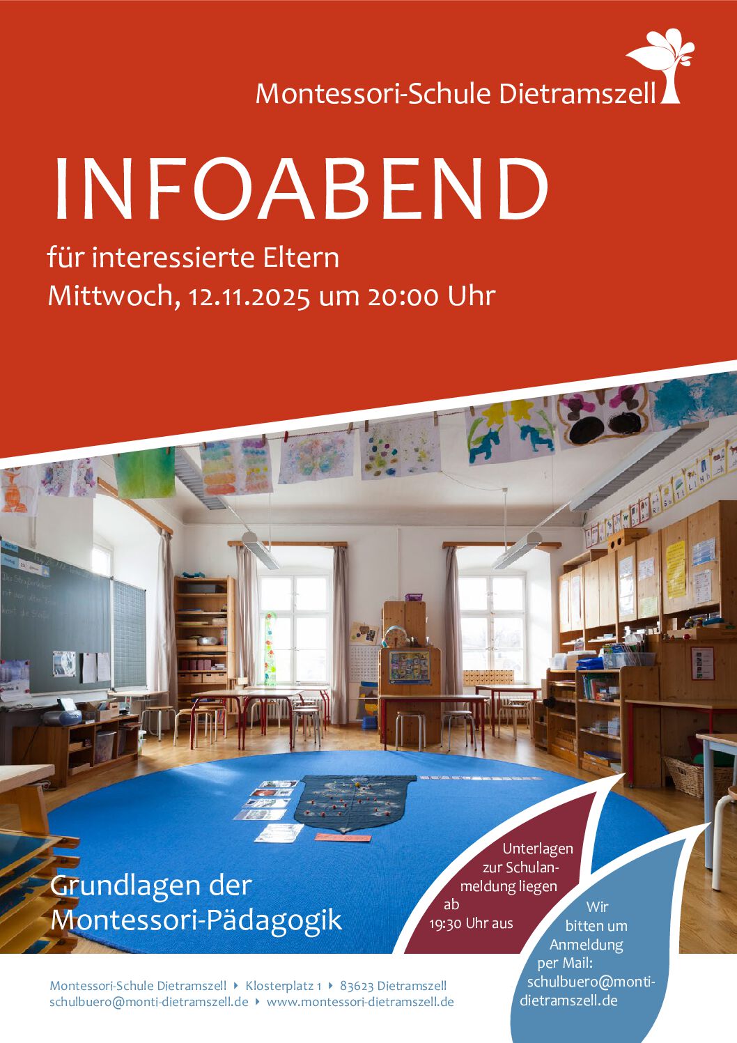 Unterlagen zur Schulanmeldung liegen ab 19:30 Uhr aus. Wir bitten Sie um Anmeldung per Mail oder telefonisch. schulbuero@monti-dietramszell.de Telefonnummer: 08027-1722