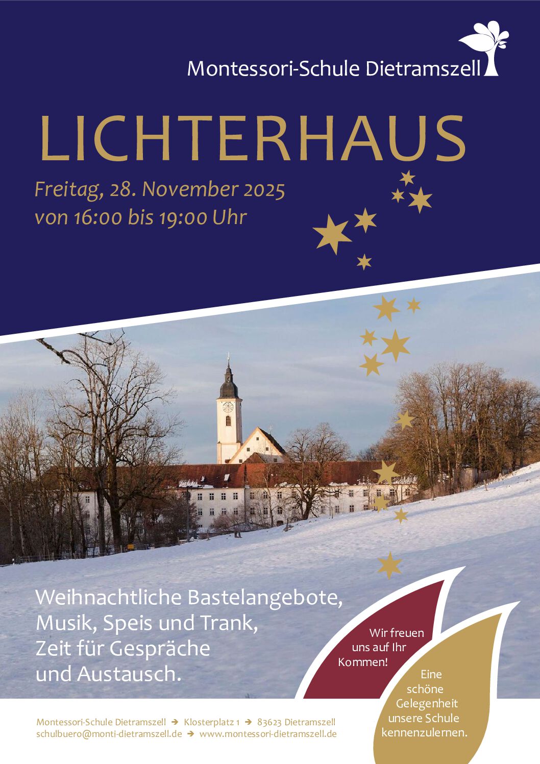 Herzliche Einladung zum Lichterhaus 2025. Eine schöne Gelegenheit, unsere Schule kennenzulernen. Es wird gebastelt, gewerkelt, gesungen und gespielt.
